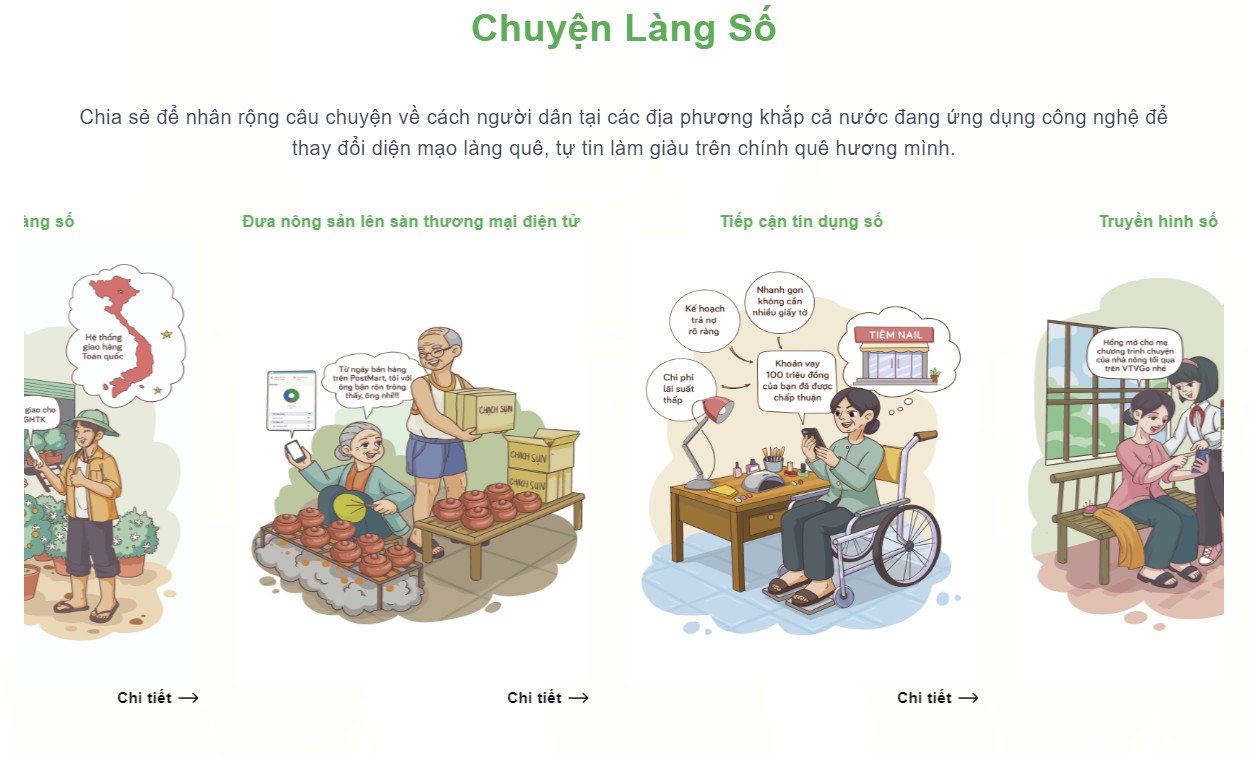 Làng số cũng giới thiệu khoảng 50 câu chuyện điển hình, gắn với hơn 100 con người điển hình, cụ thể. Mỗi làng, mỗi xã sẽ là một cộng đồng khác biệt, vì thế, sẽ không có mô hình làng số phù hợp cho tất cả. Tuy nhiên, từng câu chuyện đều gắn với bối cảnh, cách làm và kết quả để người dân, chính quyền tham khảo, học hỏi, áp dụng để giúp lan tỏa, nhân rộng, từng bước hình thành nên các làng số trên khắp cả nước.