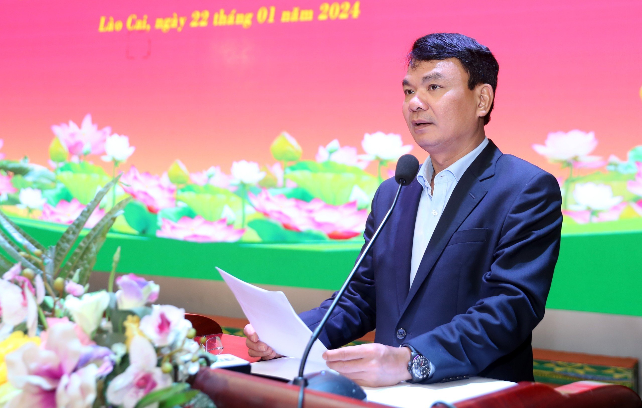 Đồng chí Đặng Xuân Phong - Bí thư Tỉnh ủy phát biểu tiếp thu các ý kiến chỉ đạo và cảm ơn sự quan tâm của đồng chí Trần Cẩm Tú đối với Lào Cai.