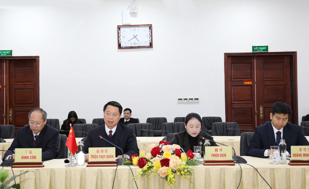 Bí thư Châu ủy Hồng Hà - Triệu Thụy Quân khẳng định: Trung Quốc từ lâu đã là đối tác thương mại lớn nhất của Việt Nam. Việt Nam cũng là đối tác thương mại lớn nhất của Trung Quốc trong thị trường ASEAN và là đối tác thương mại lớn thứ 4 của Trung Quốc trên thế giới. Châu Hồng Hà rất coi trọng tình hữu nghị giữa hai bên và mong muốn phối hợp thúc đẩy làm sâu sắc, chặt chẽ hơn nữa mối quan hệ giữa Đảng, Chính quyền và Nhân dân hai bên. Bí thư Châu uỷ Hồng Hà Triệu Thụy Quân tin tưởng rằng, với tiềm năng, lợi thế, mối quan hệ truyền thống tốt đẹp, hai bên sẽ có hợp tác hiệu quả hơn trong thời gian tới, nhất là gia tăng gấp nhiều lần giá trị kim ngạch xuất nhập khẩu so với hiện tại.