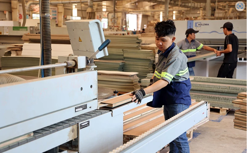 Sản xuất đồ gỗ xuất khẩu tại Công ty cổ phần INTERHOUSE LA thuộc Tập đoàn Xây dựng Hòa Bình, Khu công nghiệp Hòa Bình, huyện Thủ Thừa, tỉnh Long An. (Ảnh ĐĂNG ANH)