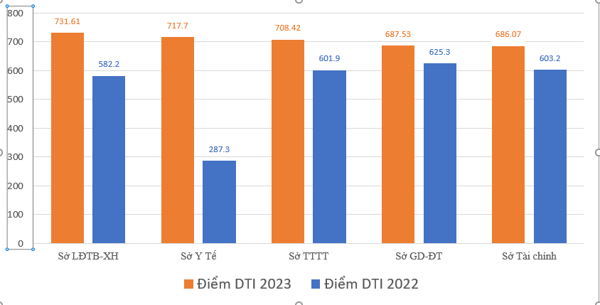 Theo kết quả đánh giá, nhóm các cơ quan, đơn vị có thủ tục hành chính có 17/18 cơ quan xếp hạng mức độ nâng cao. Đứng đầu chỉ số xếp hạng là Sở Lao động – Thương binh và Xã hội với tổng điểm 731,61 đạt 73,16% so với điểm tối đa. Sở Y tế đứng thứ 2 với 71,77%; thứ 3 là Sở Thông tin và Truyền thông đạt 70,84%.