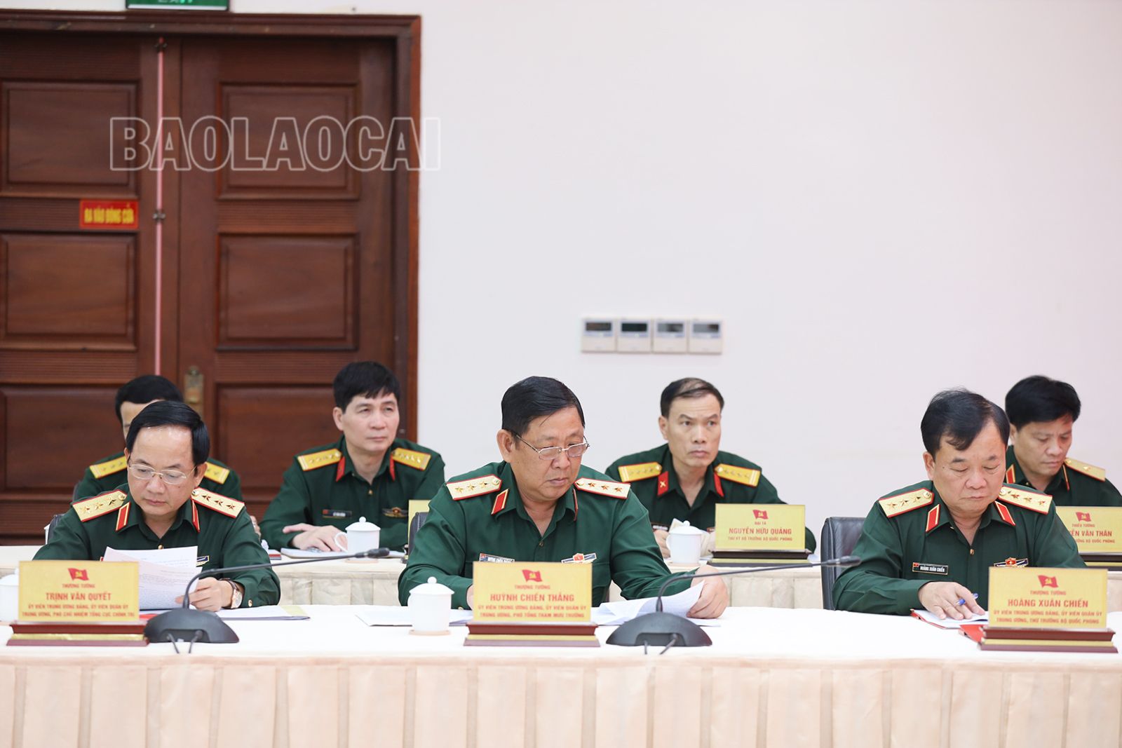 Tiếp và làm việc với Đoàn công tác của Bộ Quốc phòng, phía tỉnh Lào Cai có các đồng chí: Đặng Xuân Phong, Ủy viên Ban Chấp hành Trung ương Đảng, Bí thư Tỉnh ủy, Trưởng Đoàn đại biểu Quốc hội tỉnh; Vũ Xuân Cường, Phó Bí thư Thường trực Tỉnh ủy, Chủ tịch HĐND tỉnh; Hoàng Giang, Phó Bí thư Tỉnh ủy; các đồng chí Ủy viên Ban Thường vụ Tỉnh ủy; lãnh đạo UBND tỉnh; lãnh đạo một số sở, ngành của tỉnh; lãnh đạo các huyện biên giới Bảo Thắng, Bát Xát, Mường Khương, Si Ma Cai…