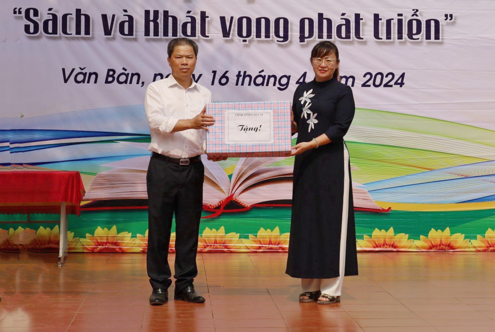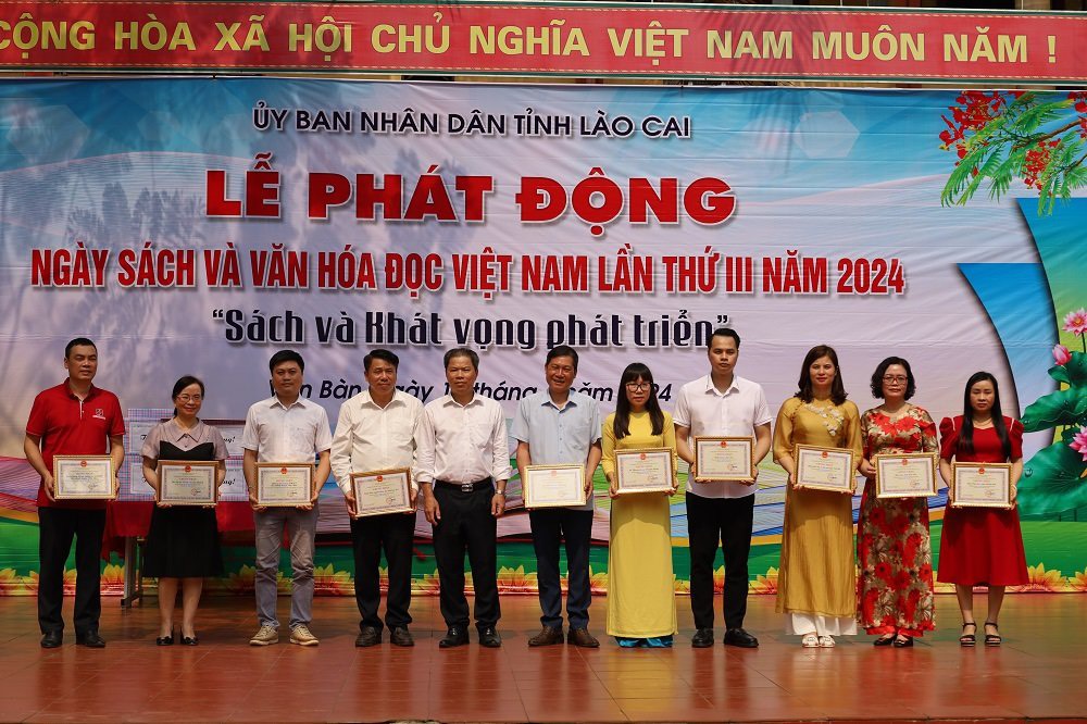Ngày 16/4, tại Trường THPT Số 1 huyện Văn Bàn, Ủy ban nhân dân tỉnh Lào Cai tổ chức phát động hưởng ứng Ngày Sách và Văn hóa đọc Việt Nam năm 2024 với thông điệp “Sách và Khát vọng phát triển”. Đây là năm thứ ba tỉnh Lào Cai triển khai hưởng ứng Ngày Sách và Văn hóa đọc Việt Nam (21/4).Tham dự buổi lễ có đồng chí Giàng Thị Dung, Phó Chủ tịch UBND tỉnh; đại diện lãnh đạo Sở Thông tin và Truyền thông, Sở Văn hóa và Thể thao, Sở Giáo dục và Đào tạo, Tỉnh đoàn Lào Cai, lãnh đạo các cơ quan báo chí trong tỉnh; Thường trực Huyện ủy, HĐND, UBND huyện Văn Bàn, Bát Xát, cùng hơn 1.000 học sinh và giáo viên một số trường học trên địa bàn huyện Văn Bàn.