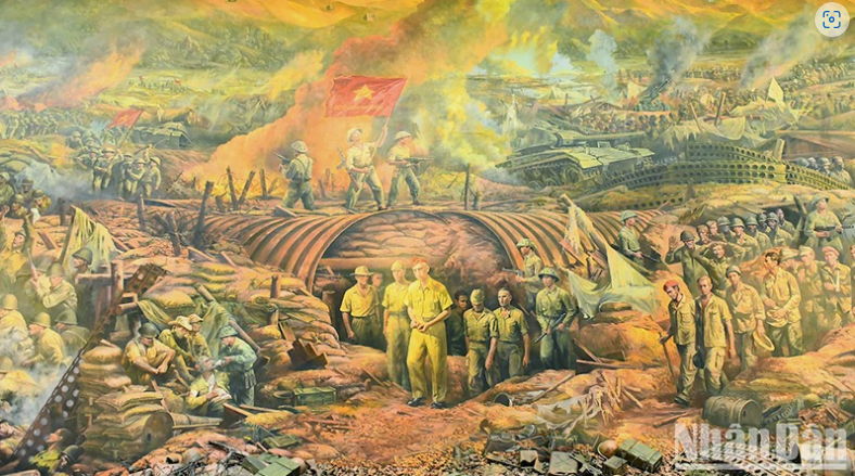 Một phần bức tranh toàn cảnh Chiến dịch Điện Biên Phủ tại Bảo tàng Chiến thắng lịch sử Điện Biên Phủ, tỉnh Điện Biên. (Ảnh: ĐĂNG KHOA)
