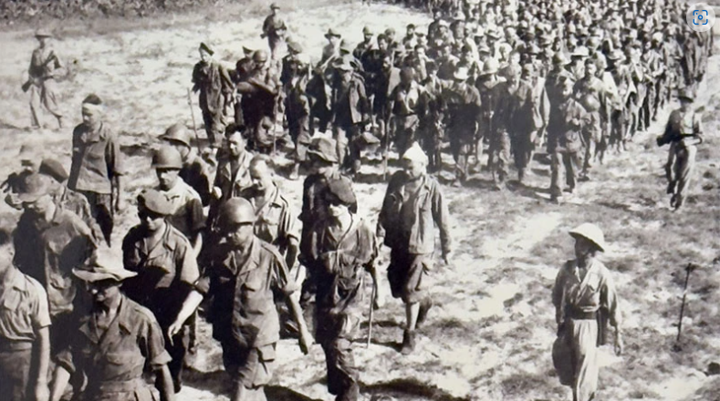 Tù binh Pháp tại chiến dịch Điện Biên Phủ. (Ảnh: Tư liệu)