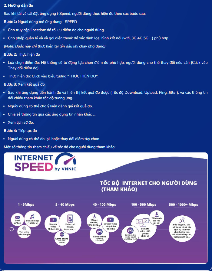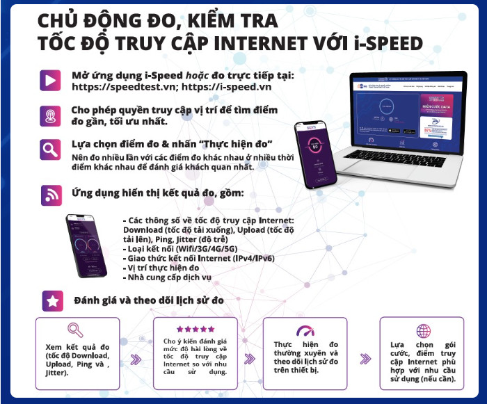 Công cụ i-Speed cho phép người sử dụng (người dân/tổ chức/doanh nghiệp) tự đo tốc độ, đánh giá chất lượng dịch vụ truy nhập Internet băng rộng mọi thời điểm, trên cơ sở dữ liệu thu thập được các doanh nghiệp sẽ đầu tư nâng cấp hạ tầng mạng để cung cấp chất lượng dịch vụ phù hợp với nhu cầu đáp ứng phát triển kinh tế số, chuyển đổi số của địa phương và trên toàn quốc.