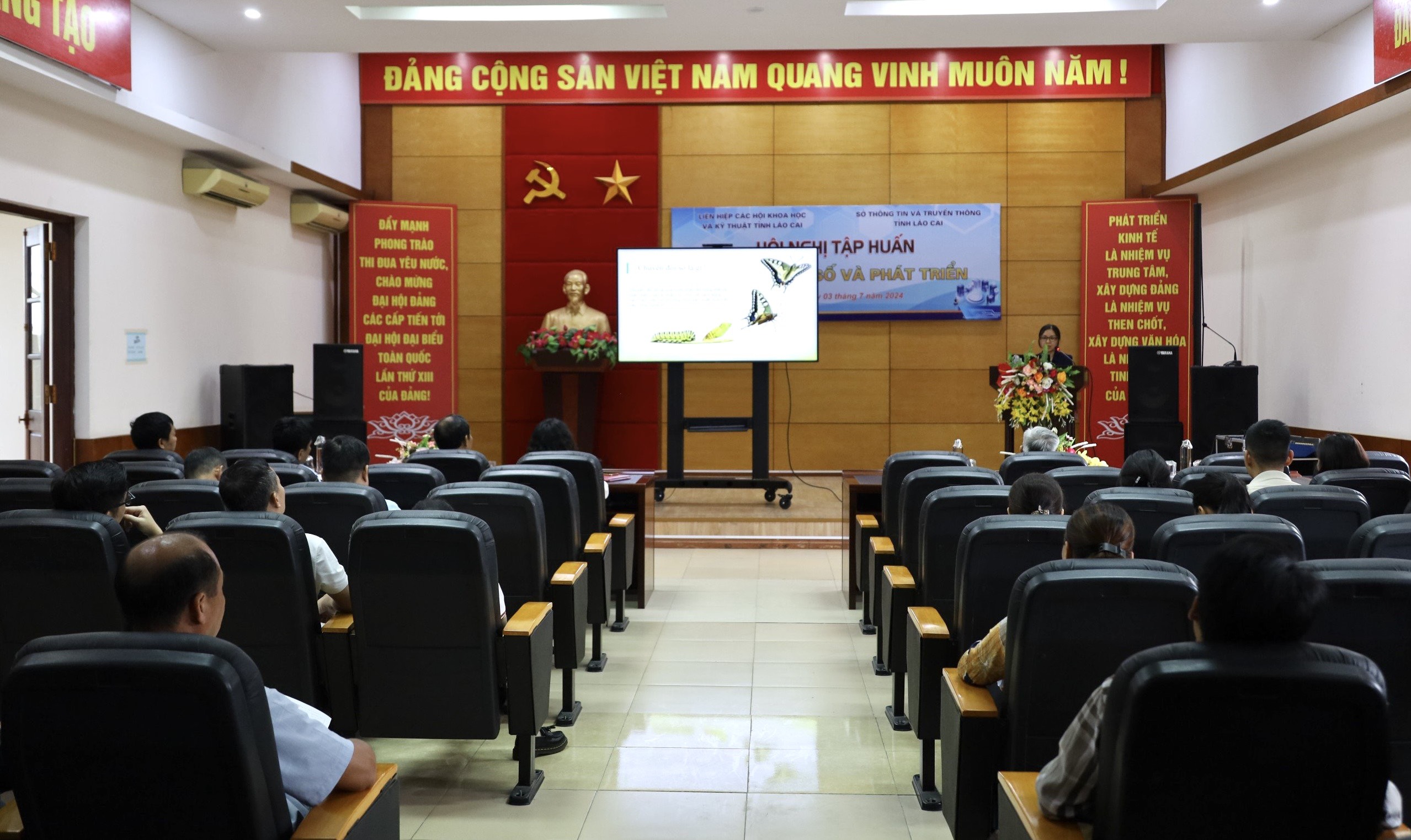 Sáng 03/7, Liên hiệp các Hội Khoa học và Kỹ thuật tỉnh Lào Cai phối hợp cùng Sở Thông tin và Truyền thông tổ chức Hội nghị tập huấn Chuyển đổi số và Phát triển năm 2024.Tham dự hội nghị có các đồng chí: Tăng Văn Hạnh - Phó Giám đốc Sở Thông tin và Truyền thông; Bùi Văn Thắng – Chủ tịch Liên hiệp các Hội Khoa học và Kỹ thuật tỉnh; các đồng chí lãnh đạo, cán bộ cơ quan Liên hiệp các Hội Khoa học và Kỹ thuật tỉnh Lào Cai cùng hơn 80 hội viên chức, công chức của Liên hiệp Hội.