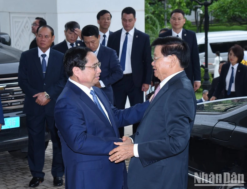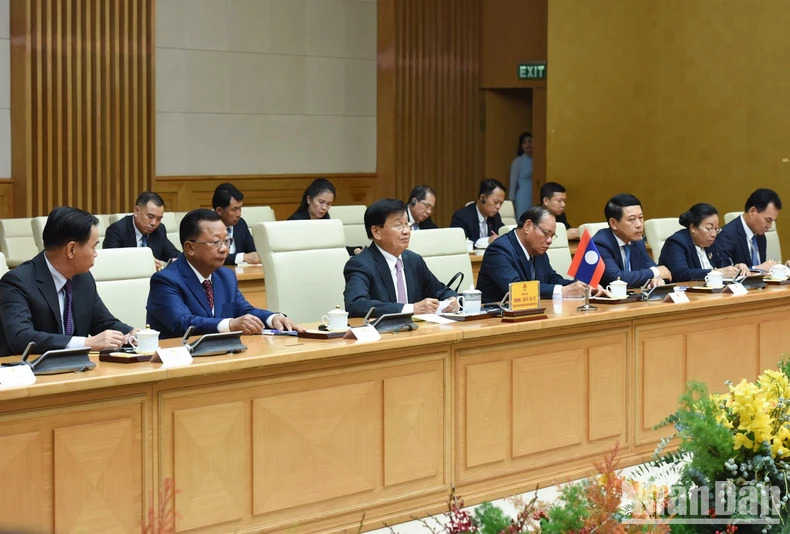 Thủ tướng Phạm Minh Chính và Tổng Bí thư, Chủ tịch nước Thongloun Sisoulith bày tỏ vui mừng về quan hệ hai nước không ngừng được củng cố, ngày càng đi vào chiều sâu và hiệu quả.