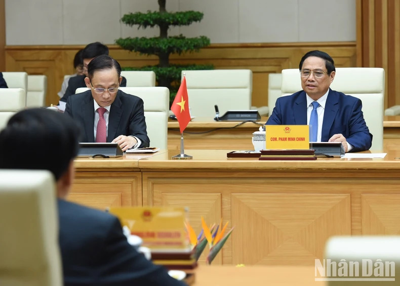 Thủ tướng Phạm Minh Chính phát biểu ý kiến tại buổi hội kiến. (Ảnh:TRẦN HẢI)