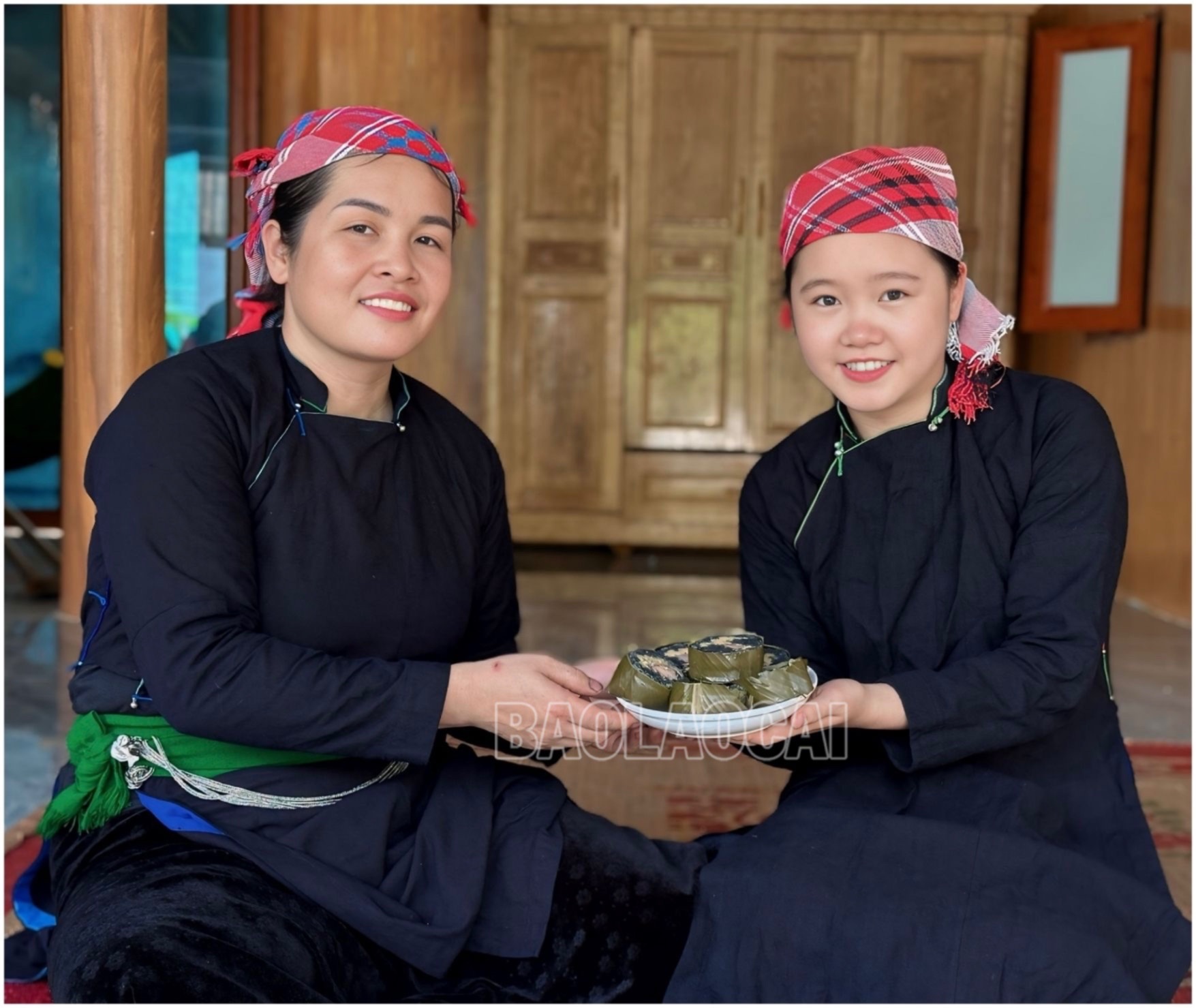 Đây là bà Hoàng Thị Huế và con gái. Bà Huế là 1 trong 2 phụ nữ Tày ở bản Mạ sản xuất ra chúng tôi nhiều nhất. Học theo các bà, các mẹ, khi chỉ mới 13,14 tuổi, bà Huế đã biết gói bánh chưng đen. Nhà gần chợ nên hằng ngày bà gói chúng tôi và đem ra chợ bán. Sau đó nhiều người thưởng thức và thấy chúng tôi có hương vị đặc biệt. Chúng tôi được yêu thích và người dân đặt bà Huế gói bánh ngày càng nhiều hơn. Vào các ngày rằm hay lễ, tết, chúng tôi được gói thành hàng nghìn cái và bán đi nhiều địa phương trong nước. Hằng ngày, có người đặt mua, bà Huế vẫn gói được vài trăm bánh/ngày.