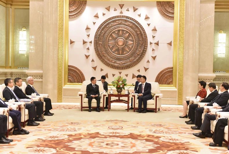 Phó Thủ tướng Hồ Đức Phớc hội kiến Bí thư Đảng ủy, Chủ nhiệm Nhân đại (Hội đồng nhân dân) Khu tự trị dân tộc Choang Quảng Tây Lưu Ninh.