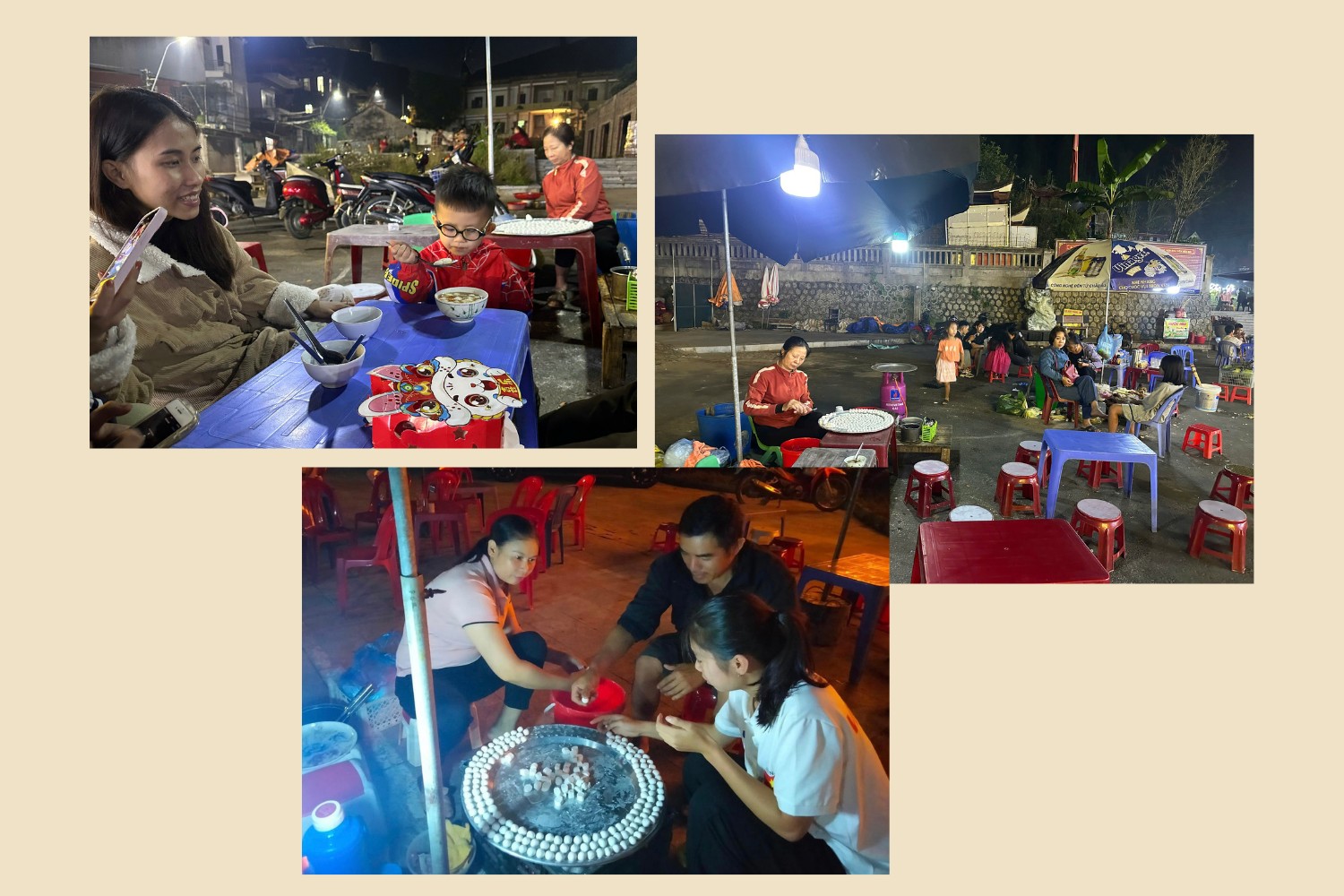 18 giờ, chợ đêm Bắc Hà trở nên tấp nập hơn vì những quán ẩm thực đã nổi lửa đợi thực khách. Một vài bạn trẻ đến từ miền Nam hồ hởi gọi nhau ghé vào quán nhỏ ven đường với tấm biển chào hàng: “Đặc sản sủi dìn Bắc Hà”. Dù đã lên Bắc Hà và thưởng thức món sủi dìn nhiều lần nhưng tiết trời se lạnh của mùa thu vùng cao khiến tôi không thể cưỡng lại sự hấp dẫn của món ăn mang hương vị đặc trưng của nơi này.