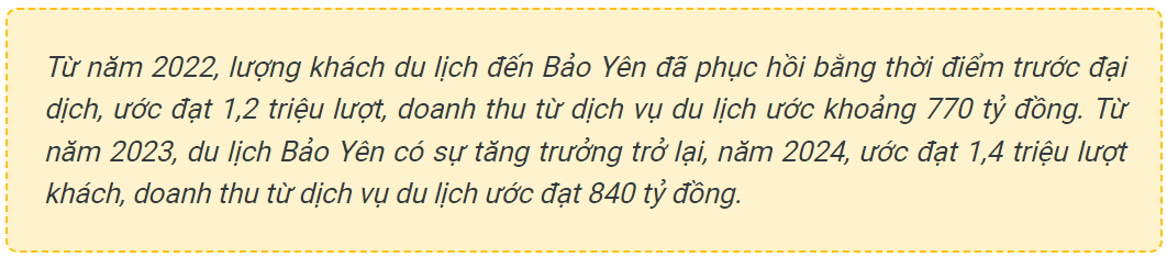 Ông Nguyễn Sĩ Hồng, Trưởng phòng Văn hóa - Thông tin huyện Bảo Yên chia sẻ: Các lễ hội truyền thống góp phần tuyên truyền, quảng bá, giới thiệu rộng rãi đến du khách thập phương về các giá trị văn hóa truyền thống của đồng bào các dân tộc huyện Bảo Yên; kích cầu du lịch, tạo tiền đề liên kết với các đơn vị lữ hành trong và ngoài tỉnh xây dựng các tour, tuyến du lịch liên tỉnh, tạo thương hiệu cho du lịch tâm linh và du lịch cộng đồng của huyện Bảo Yên, góp phần tăng thu nhập cho người dân.