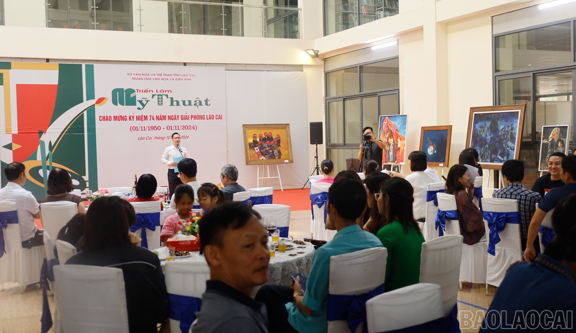 Ngày 26/10, Trung tâm Văn hóa và Điện ảnh tỉnh tổ chức khai mạc triển lãm mỹ thuật kỷ niệm 74 năm Ngày giải phóng Lào Cai (1/11/1950 - 1/11/2024).