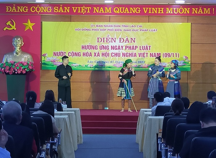 Tiểu phẩm tuyên truyền pháp luật thu hút sự theo dõi của đại biểu tại Diễn đàn Hưởng ứng ngày pháp luật năm 2023 tại Lào Cai.
