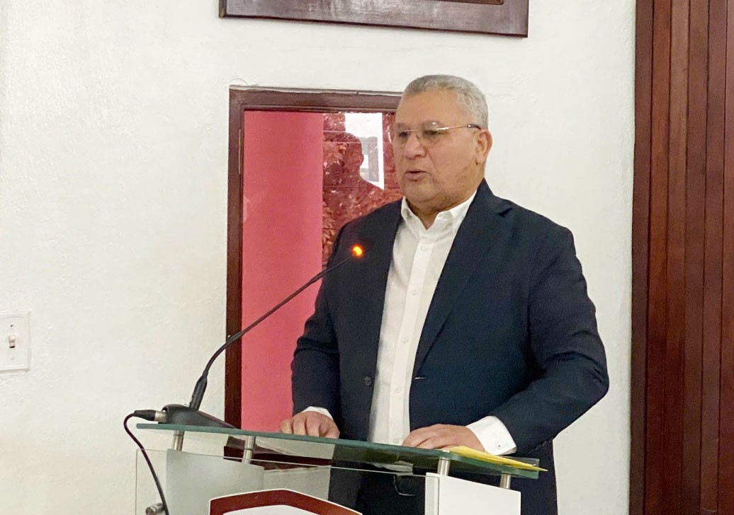 Thị trưởng quận Moca Mi-ghen Goa-rô-cu-gia Ca-bran phát biểu tại cuộc làm việc.