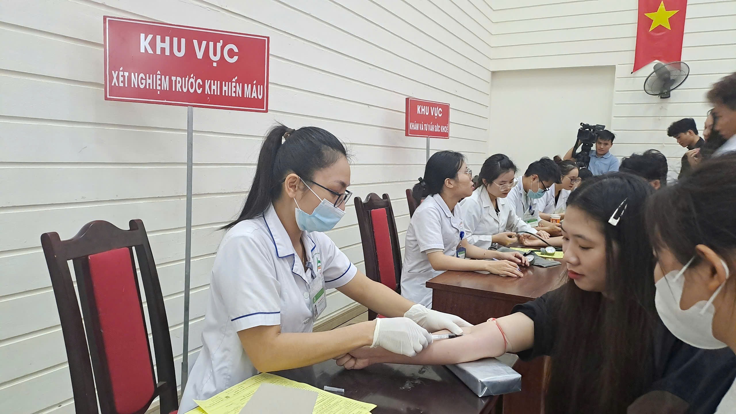 Quang cảnh buổi hiến máu tình nguyện.