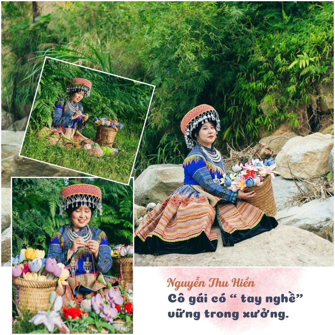 Một trong những người có “tay nghề” vững tại xưởng “Núi Rừng Handmade” là cô gái ngoài 20 tuổi - Nguyễn Thu Hiền, quê ở huyện Bảo Thắng, từng học du lịch tại Hà Nội. Tuy còn trẻ nhưng Hiền đã làm quen với len nhiều năm.