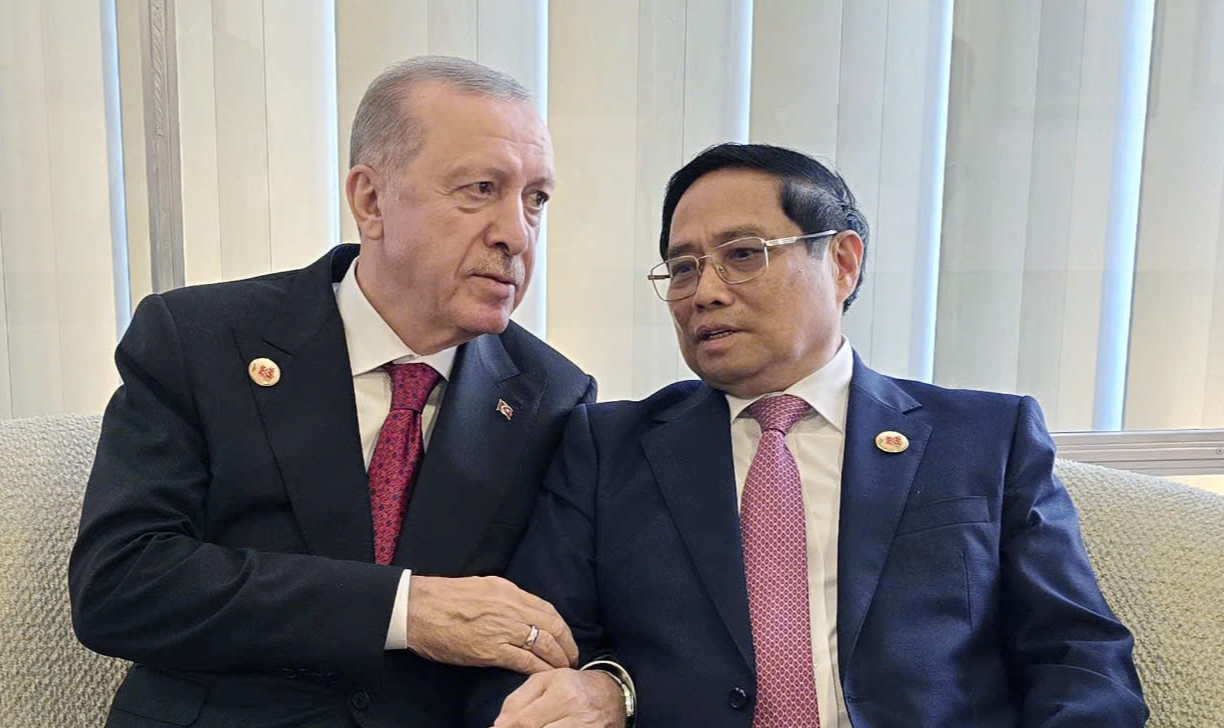 Thủ tướng Phạm Minh Chính trao đổi với Tổng thống Thổ Nhĩ Kỳ Recep Tayyip Erdogan - Ảnh: VGP