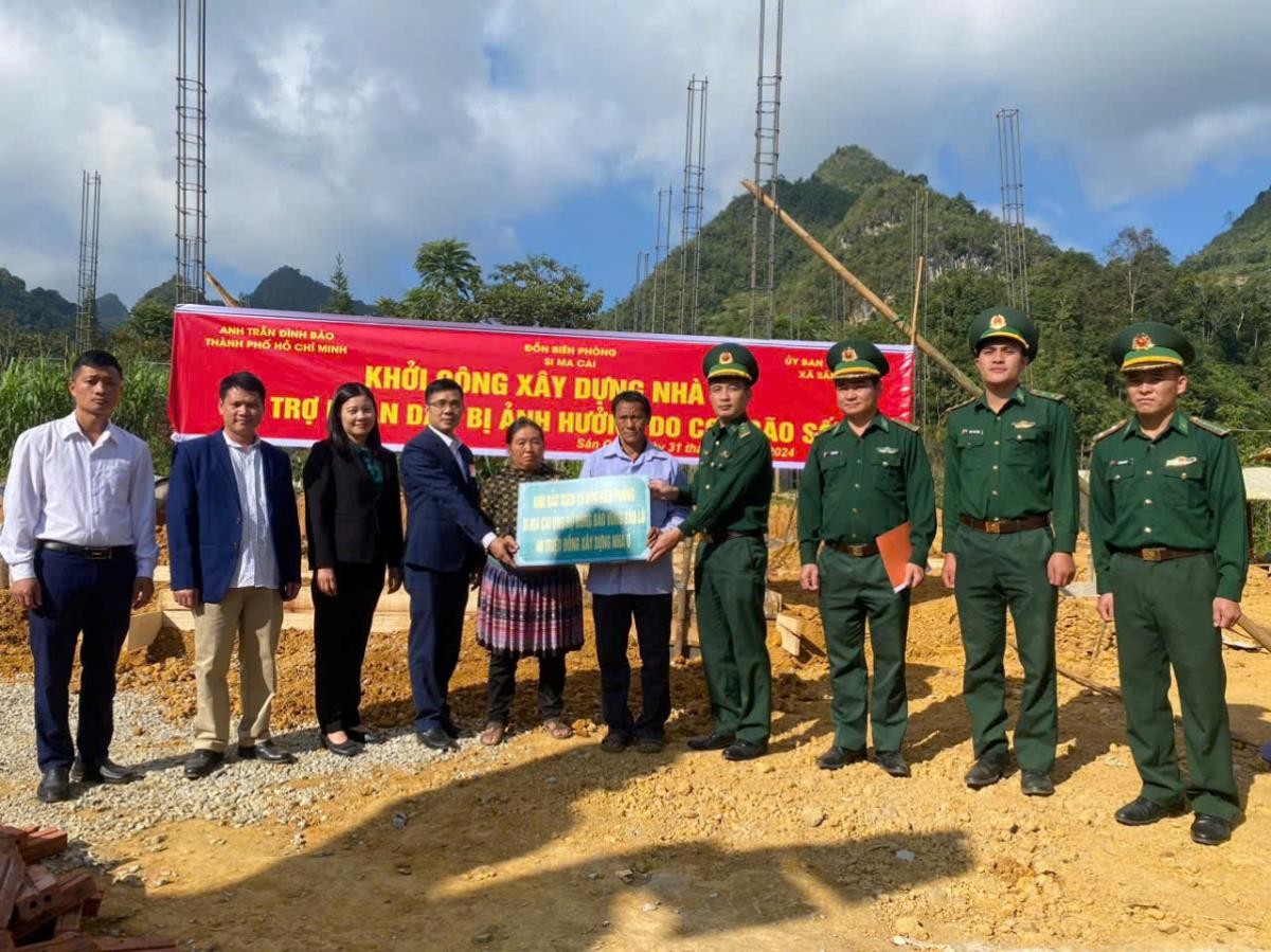 Cán bộ, đoàn viên, thanh niên Đồn Biên phòng Si Ma Cai tham gia ủng hộ xây nhà cho gia đình bị ảnh hưởng bởi cơn bão số 3.