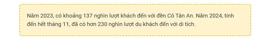 Xác định đền Cô Tân An là nơi đón nhiều du khách phương xa đến dâng hương, chiêm bái nên Ban Quản lý đã bố trí 40 ki-ốt dịch vụ sắp lễ ngay xung quanh sân đền để thuận tiện cho du khách.