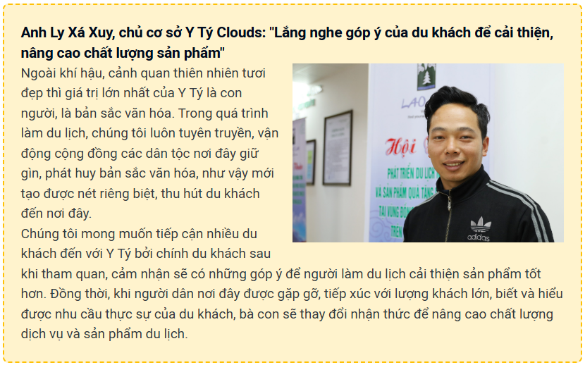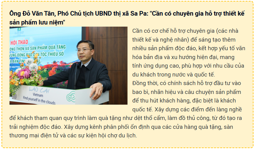 Ông Hà Văn Thắng, Giám đốc Sở Du lịch cho biết: Năm 2025, ngành du lịch Lào Cai đặt mục tiêu thu hút 10 triệu lượt khách, trong đó có 1 triệu lượt khách quốc tế. Để đạt mục tiêu này, bên cạnh việc khai thác hiệu quả tiềm năng vốn có về khí hậu, cảnh sắc thiên nhiên phải nâng cao chất lượng dịch vụ du lịch, trong đó có việc xây dựng các điểm du lịch nông thôn, thiết kế quà tặng, quà lưu niệm cho khách du lịch thực sự độc đáo. Thời gian qua, Sở Du lịch đã tham mưu cho tỉnh một số định hướng, giải pháp phát triển du lịch nông thôn và sản phẩm du lịch vùng đồng bào dân tộc thiểu số từ bảo tồn di sản văn hóa du lịch, đa dạng hóa sản phẩm, đào tạo nguồn nhân lực, ưu tiên nguồn lực đầu tư… Ngành du lịch rất cần sự chung tay của các địa phương, các doanh nghiệp, cơ sở du lịch, người dân để thực hiện hiệu quả các giải pháp đã đề ra.