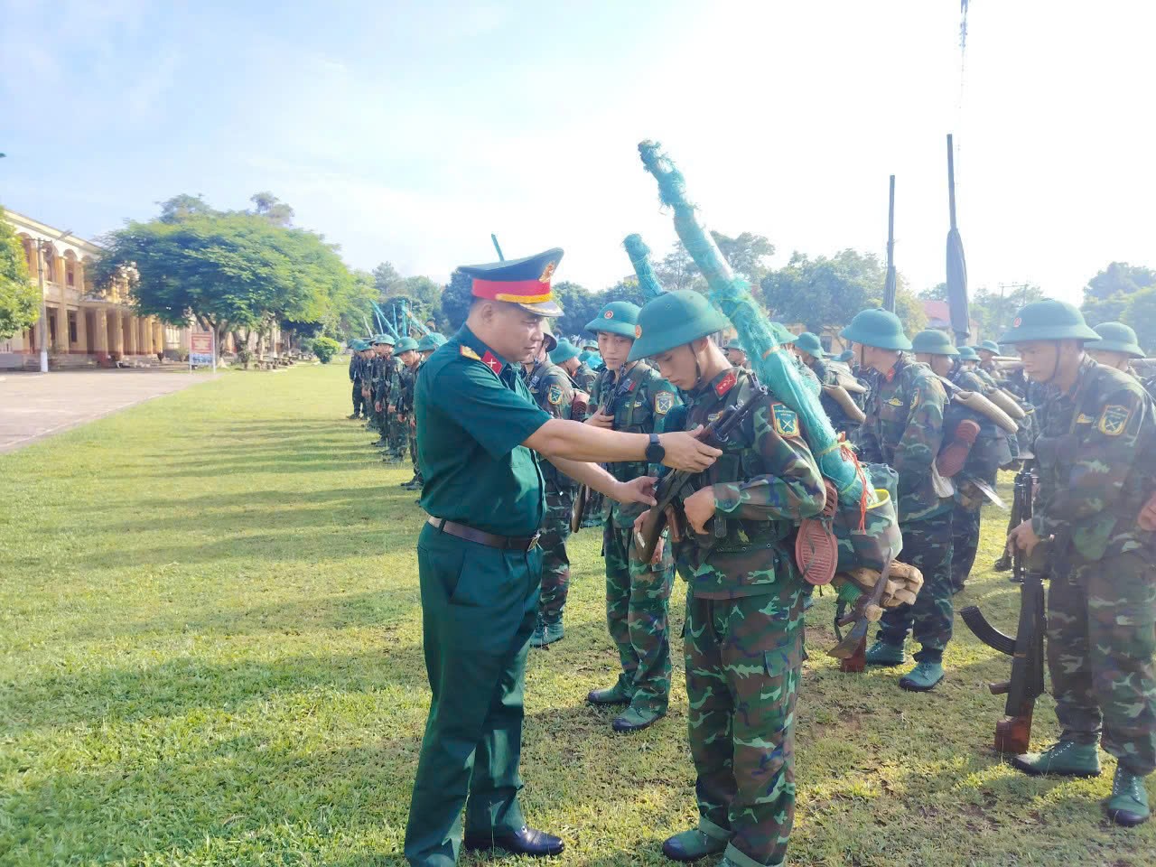 Cán bộ đơn vị kiểm tra công tác chuẩn bị trước khi hành quân.
