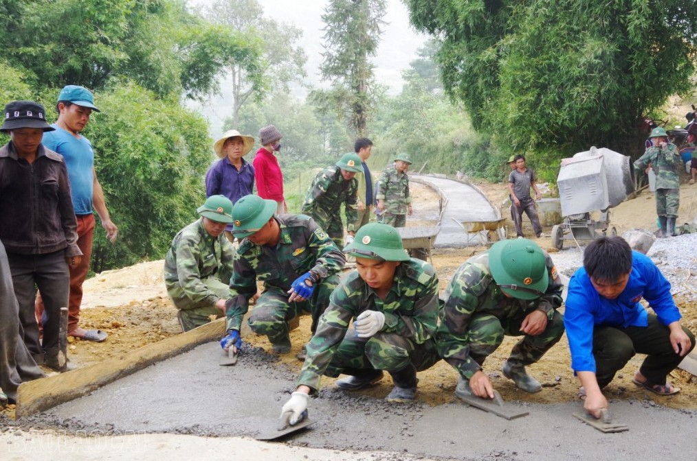 Cán bộ, chiến sĩ Đồn Biên phòng Tả Gia Khâu tích cực tham gia giúp đỡ địa phương xây dựng nông thôn mới.