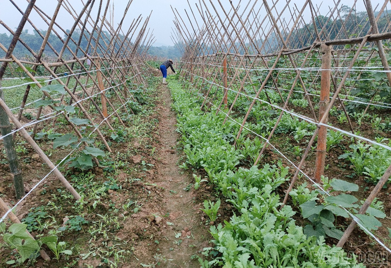 Chị Bùi Thị Hoa ở thôn Giao Tiến, xã Thống Nhất, thành phố Lào Cai cho biết: Người dân không để đất nghỉ bằng cách thực hiện xen canh, gối vụ liên tục. Như tại vườn rau màu của gia đình, khi cây súp lơ, rau cải cho thu hoạch, thì cây mướp ngọt cũng leo giàn.