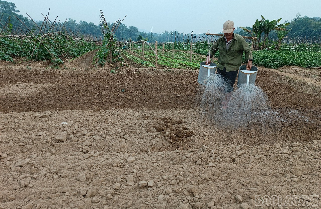 Nông dân tích cực chăm sóc rau để kịp cung ứng ra thị trường dịp tết.