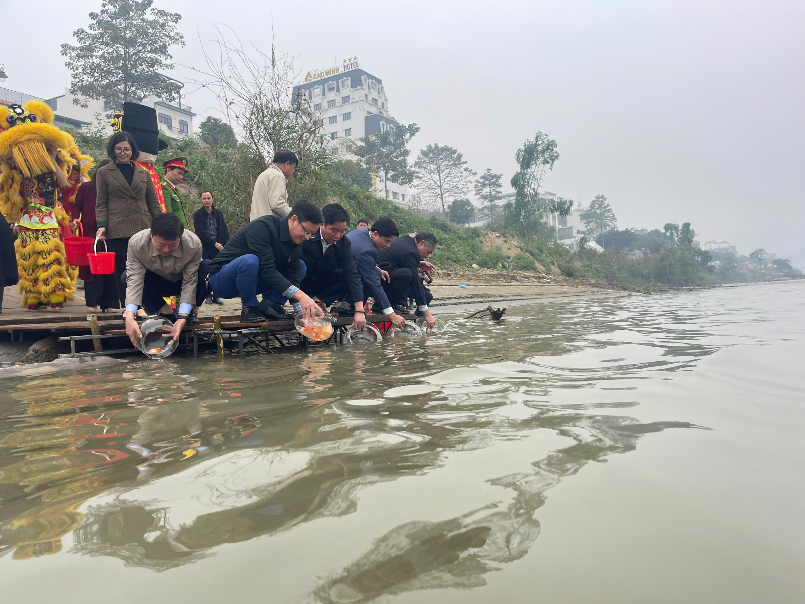 Sáng 22/1 (tức 23 tháng Chạp năm Giáp Thìn), thành phố Lào Cai phối hợp với Sở Nông nghiệp và Phát triển nông thôn, Ban Trị sự Giáo hội Phật giáo Việt Nam tỉnh Lào Cai tổ chức Ngày hội bảo vệ môi trường, thả giống phóng sinh.