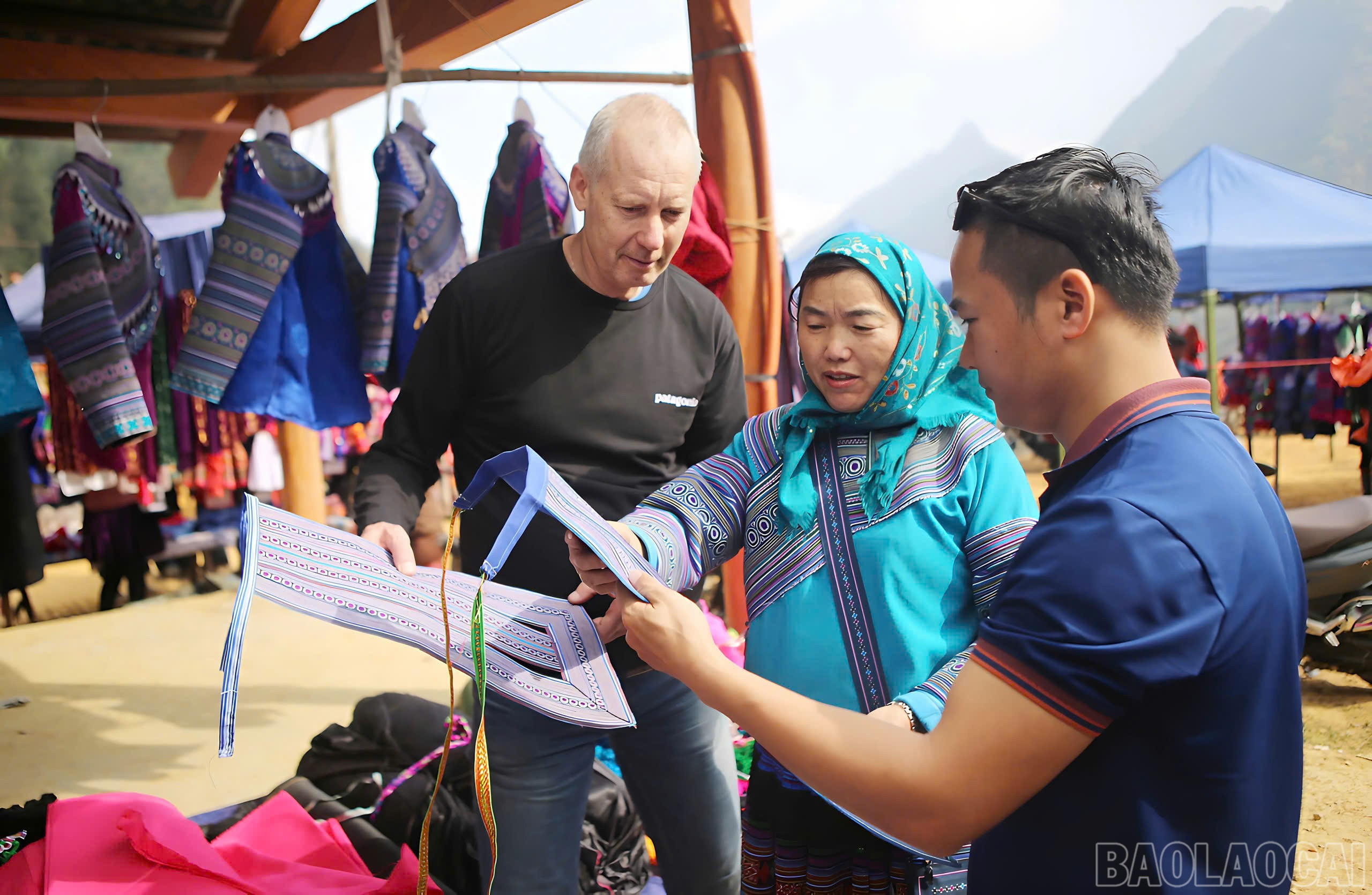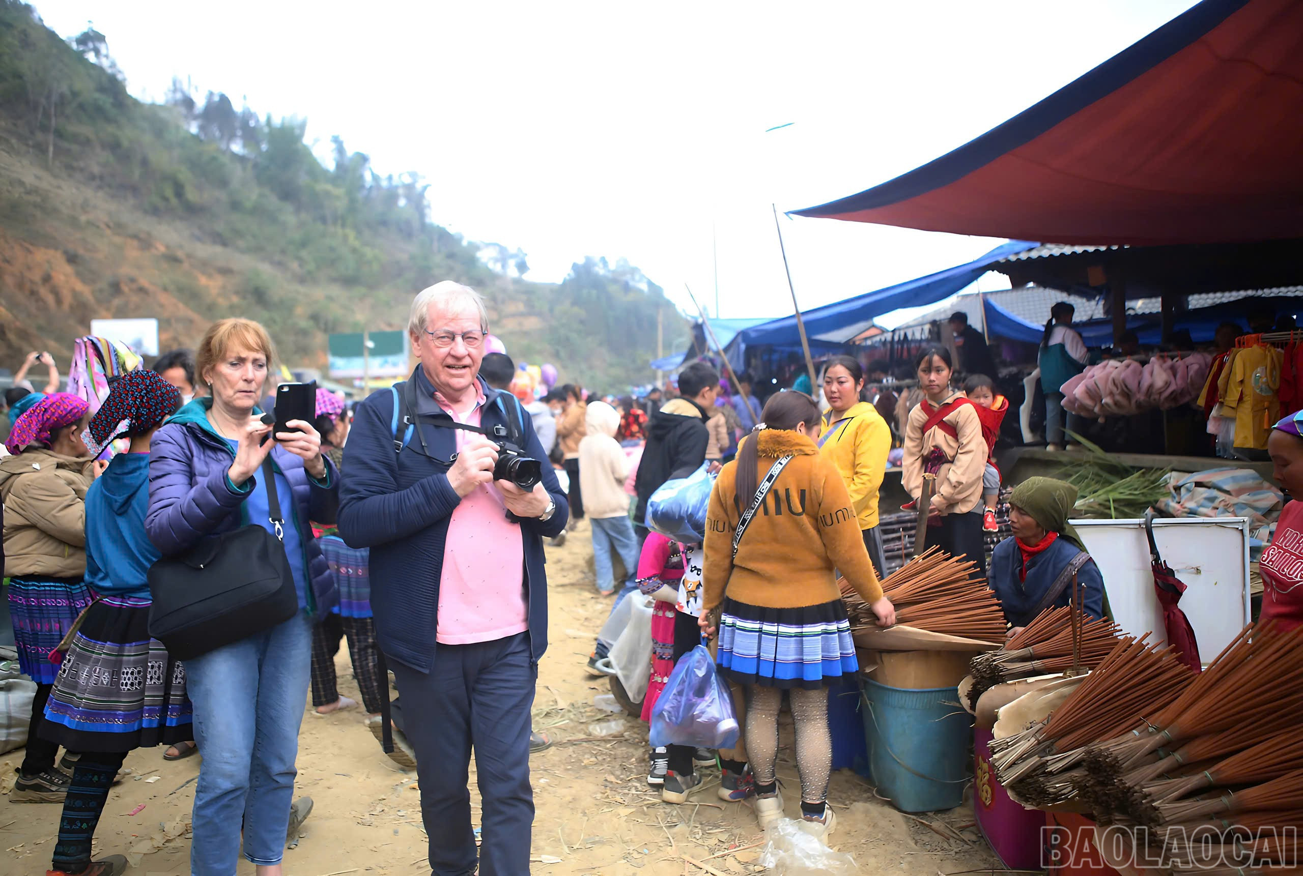 Du khách đến từ Vương quốc Anh, Hà Lan... thích thú khi trải nghiệm phiên chợ vùng cao cuối năm, tìm hiểu văn hóa đặc sắc của đồng bào dân tộc thiểu số nơi đây và ghi lại những khoảnh khắc đẹp.