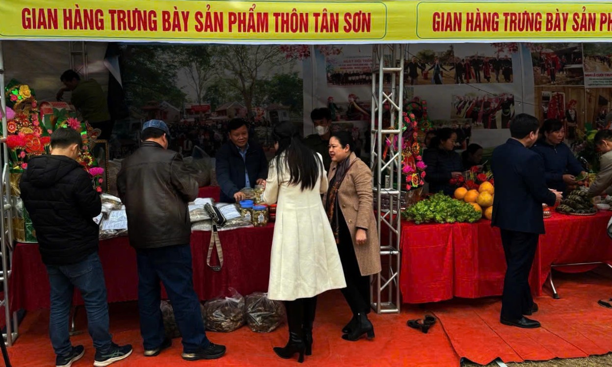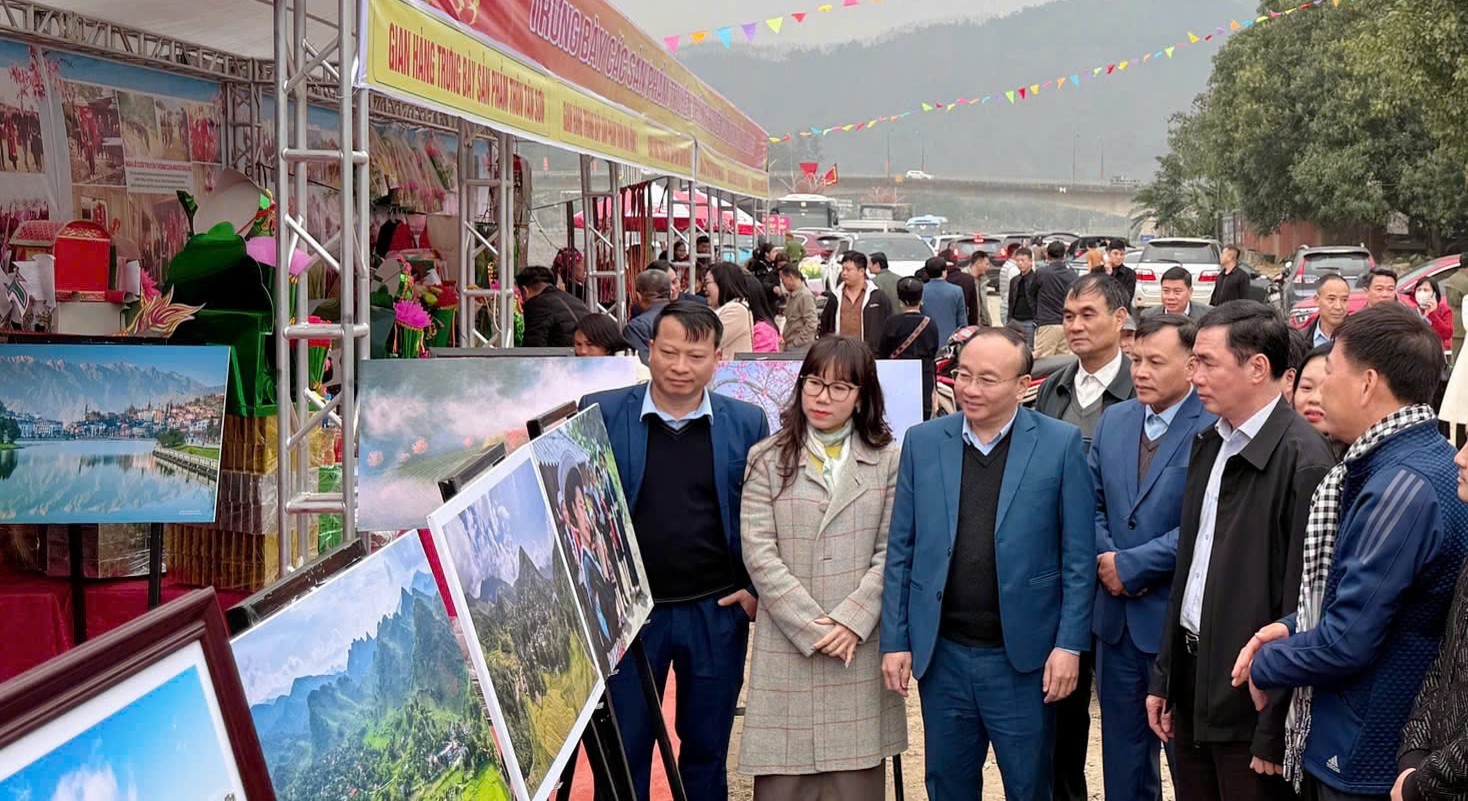Bên cạnh không gian trưng bày ảnh, triển lãm còn kết hợp giới thiệu các sản phẩm truyền thống của huyện như thổ cẩm, nông sản, dược liệu và các mặt hàng thủ công đặc trưng.