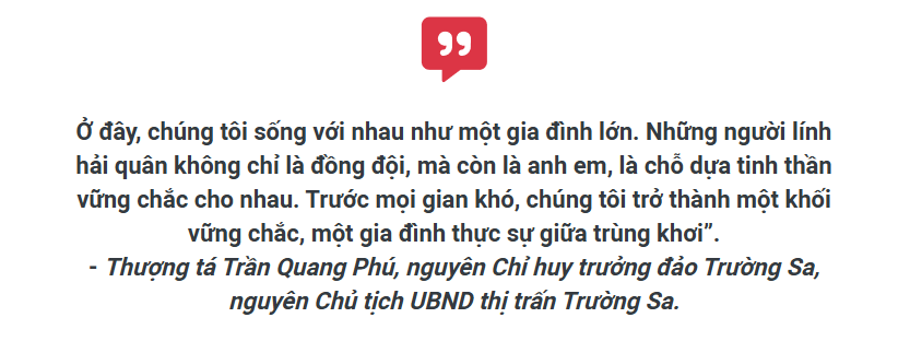 Những câu chuyện về cuộc sống nơi đảo xa không chỉ là tháng ngày thao luyện, tuần tra mà còn là khoảnh khắc sẻ chia, động viên nhau giữa những ngày biển động. Một người lính trẻ vừa ra đảo công tác thì nhận tin vợ sinh con đầu lòng, nhưng vì nhiệm vụ anh không thể ở bên. Có sĩ quan tâm sự rằng, anh đã quen với những cái tết xa nhà, quen với những đêm trực gió rít qua từng kẽ áo. Nhưng có lẽ, điều khó khăn nhất không phải là sự khắc nghiệt của thiên nhiên, mà là những nỗi nhớ khôn nguôi trong tim.