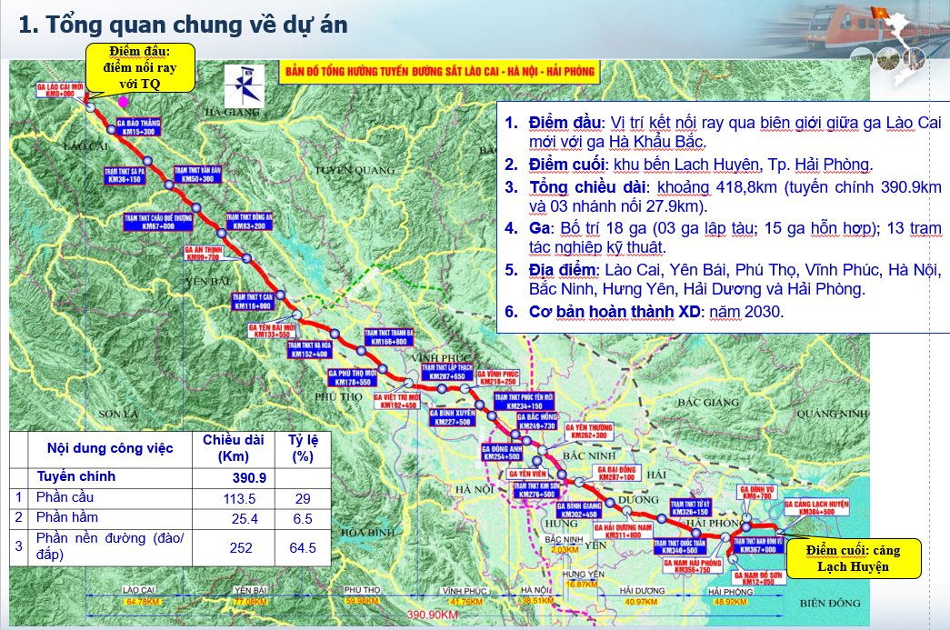 Tổng quan chung về Dự án đầu tư xây dựng tuyến đường sắt Lào Cai - Hà Nội - Hải Phòng.