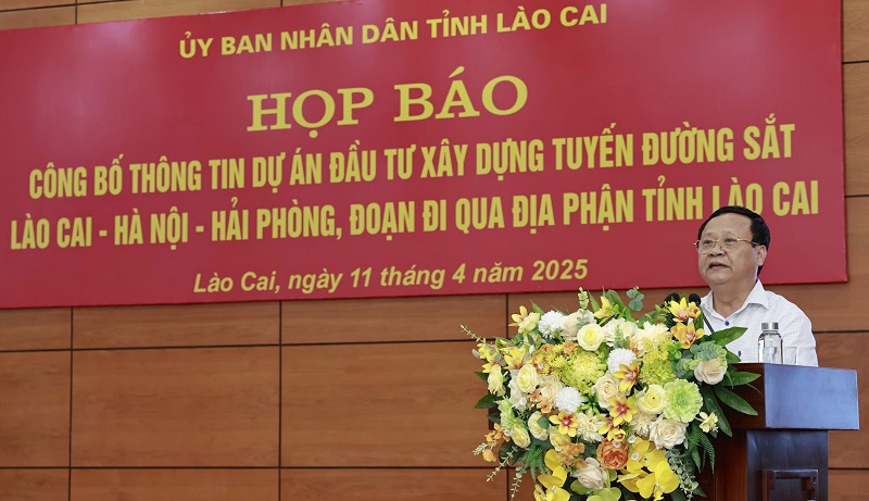Chiều 11/4/2025, Ủy ban nhân dân tỉnh Lào Cai (UBND) họp báo công bố thông tin Dự án đầu tư xây dựng tuyến đường sắt Lào Cai - Hà Nội - Hải Phòng. Ông Nguyễn Trọng Hài - Phó Chủ tịch UBND tỉnh chủ trì họp báo.