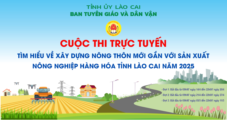 Hưởng ứng Nghị quyết số 10-NQ/TU của Tỉnh ủy về Chiến lược phát triển nông nghiệp hàng hóa, Ban Tuyên giáo và Dân vận Tỉnh ủy Lào Cai chính thức phát động Cuộc thi trắc nghiệm trực tuyến "Tìm hiểu về xây dựng nông thôn mới gắn với sản xuất nông nghiệp hàng hóa tỉnh Lào Cai năm 2025".