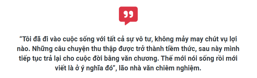 Ông nhớ: “Mệt nhọc vô cùng khi leo dốc Y Tý, bất chợt bắt gặp khóm phong lan tỏa hương thơm, tỉnh người. Kết thúc chuyến công tác, tôi đi mảng dọc theo sông Hồng trở về, đến khu vực cầu Cốc Lếu, mảng bị lật, mấy giò phong lan được bộ đội biên phòng tặng bị nước cuốn trôi mất. Sau này khi viết truyện ngắn Hoa gạo đỏ, tôi đã kể lại một phần kỷ niệm trên. Và rất nhiều chuyến đi khác như lên Sàng Ma Sáo viết về mùa thảo quả, đi Sâu Chua viết về mùa hạt rau; đi Cao Sơn viết về mùa mận hậu; về Cam Đường viết lịch sử võ trang đấu tranh năm 1948; viết về anh hùng Giàng Lao Pà trong kháng chiến chống thực dân Pháp…