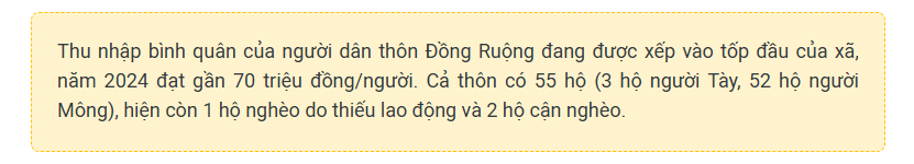 Những khởi đầu tốt đẹp đã củng cố vững chắc niềm tin sắt son của đồng bào với Đảng. Người Mông Đồng Ruộng yên tâm mở rộng diện tích trồng tre măng, nhà ít một vài ha, nhà nhiều cũng có gần chục ha. Mỗi vụ măng bội thu, Đồng Ruộng lại có thêm những hộ mới thoát nghèo.