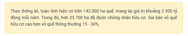 Chương trình tập huấn không chỉ giúp người dân làm chủ kỹ thuật sản xuất quế hữu cơ, tăng năng suất, chất lượng, giá trị các sản phẩm quế mà còn góp phần thúc đẩy xây dựng vùng quế phát triển bền vững, đóng góp tích cực vào công cuộc xây dựng nông thôn mới.