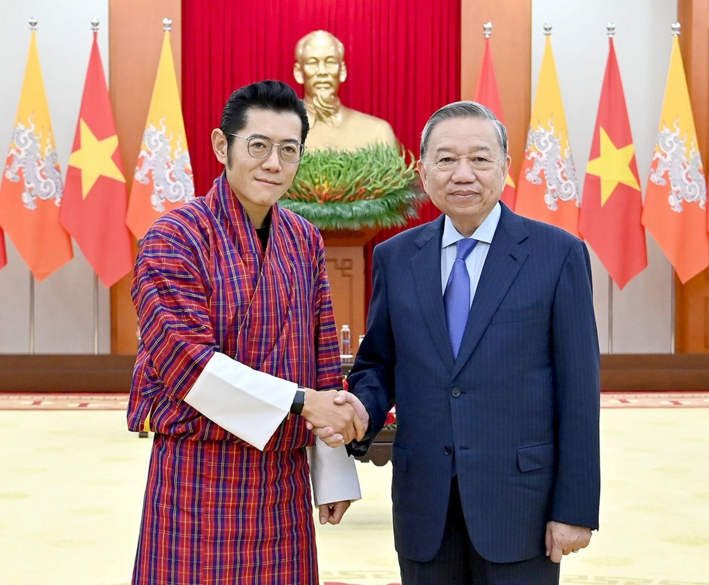 Tổng Bí thư Tô Lâm hoan nghênh kết quả cuộc hội đàm giữa Quốc vương Bhutan và Chủ tịch nước Việt Nam, trong đó hai bên nhất trí tiếp tục tăng cường hơn nữa tin cậy và gắn kết giữa hai quốc gia, tăng cường trao đổi đoàn cấp cao, trao đổi kinh nghiệm về quản trị quốc gia, tạo đột phá trong hợp tác kinh tế, thương mại, đầu tư; mở rộng hơn nữa hợp tác bảo vệ môi trường, khoa học công nghệ, đổi mới sáng tạo; khuyến khích thúc đẩy giao lưu nhân dân, trao đổi văn hóa, Phật giáo, tạo điều kiện thuận lợi cho nhân dân hai nước mở rộng hiểu biết về nhau.