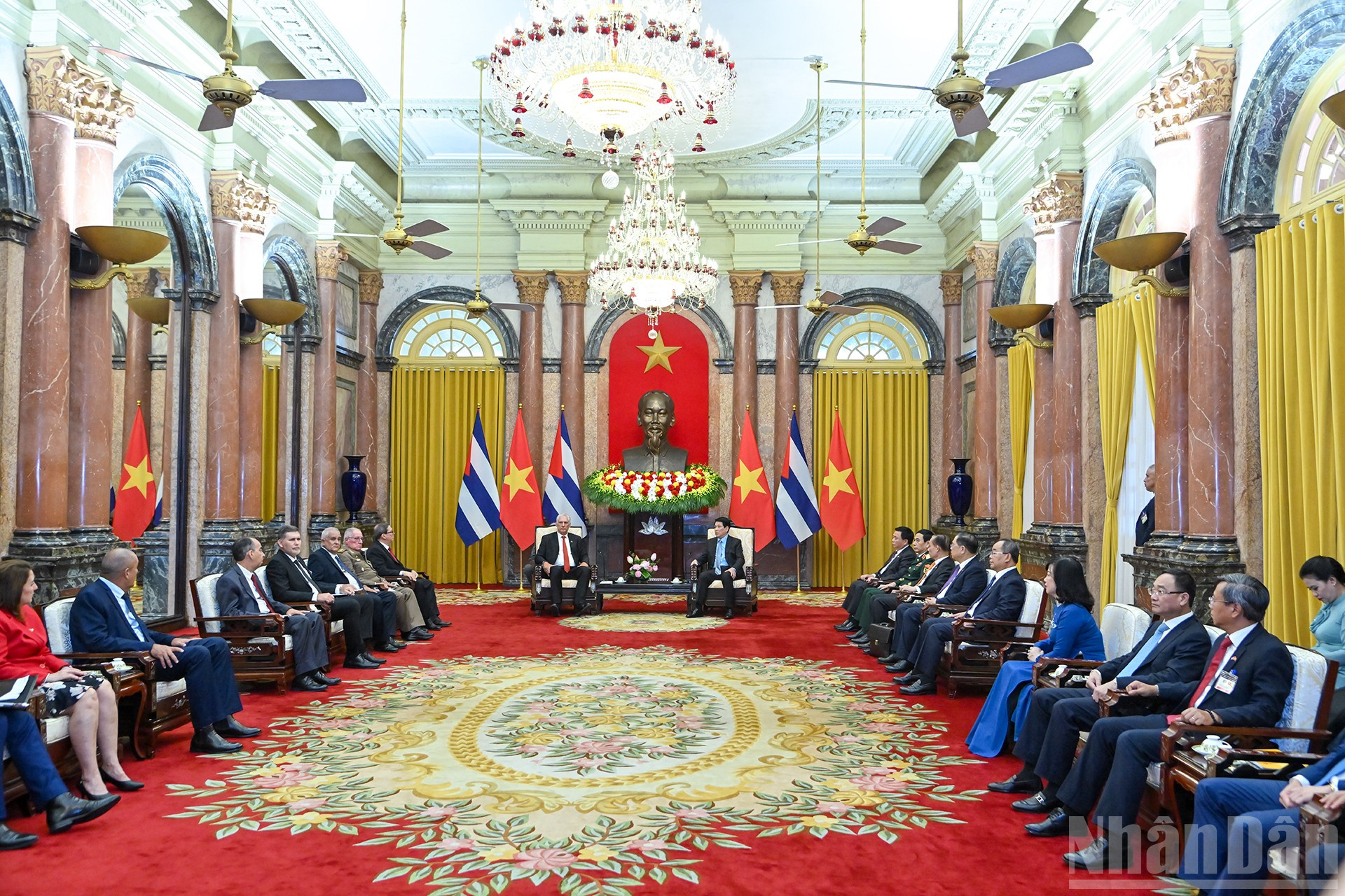 Bí thư thứ Nhất, Chủ tịch nước Miguel Diaz-Canel Bermudez khẳng định Cuba luôn trân trọng tình cảm đoàn kết và sự ủng hộ, giúp đỡ quý báu của Đảng, Nhà nước và nhân dân Việt Nam dành cho nhân dân Cuba trong thời gian qua .Bí thư thứ Nhất, Chủ tịch nước Miguel Diaz-Canel Bermudez hội kiến Chủ tịch nước Lương Cường.
