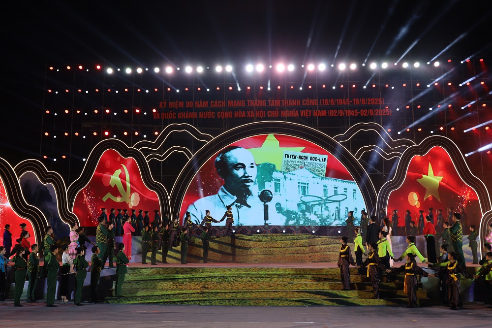 Tối 2/9, tại Quảng trường Đinh Lễ (phường Lào Cai), tỉnh Lào Cai đã long trọng tổ chức Chương trình nghệ thuật chào mừng kỷ niệm 80 năm Quốc khánh nước Cộng hòa xã hội chủ nghĩa Việt Nam (2/9/1945 – 2/9/2025) với chủ đề “80 năm vang mãi bản hùng ca”.Dự chương trình có các đồng chí: Trịnh Xuân Trường - Bí thư Tỉnh ủy, Chủ tịch HĐND tỉnh; Giàng Thị Dung - Phó Bí thư Tỉnh ủy, Chủ tịch Ủy ban MTTQ Việt Nam tỉnh; cùng các đồng chí trong Ban Thường vụ Tỉnh ủy, Thường trực HĐND, UBND, Ủy ban MTTQ Việt Nam tỉnh; lãnh đạo Đoàn ĐBQH tỉnh; các đồng chí Ủy viên BCH Đảng bộ tỉnh; đại diện các cơ quan, đơn vị, doanh nghiệp và đông đảo cán bộ, đảng viên, Nhân dân, du khách.