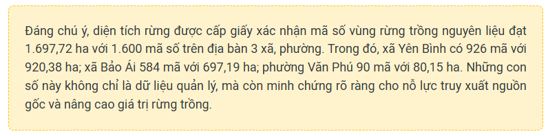 Công nghệ số trở thành “mắt thần”, giúp truy xuất từng cây gỗ, từng lô hàng, tạo ra một bản lý lịch minh bạch cho gỗ rừng trồng. Con số gần 36.000 ha rừng và quế được cấp chứng chỉ, trong đó có tới 23.719 ha quế hữu cơ, chính là quả ngọt đầu mùa cho một hành trình dài hơi, một cam kết về chất lượng và giá trị.