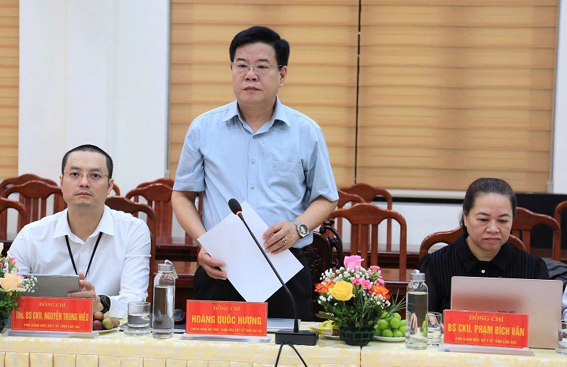 Thầy thuốc ưu tú, bác sỹ chuyên khoa II - Hoàng Quốc Hương - Giám đốc Sở Y tế tỉnh Lào Cai phát biểu tại Hội nghị.