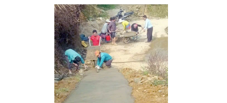 Người dân tích cực kiên cố hóa đường lên khu ruộng bậc thang.