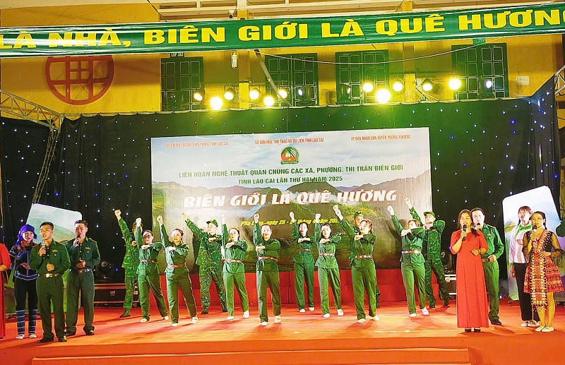 Liên hoan nghệ thuật quần chúng khu vực biên giới tỉnh Lào Cai năm 2025 thu hút đông đảo cán bộ, chiến sĩ và nhân dân tham gia, tạo sức lan tỏa mạnh mẽ trong công tác tuyên truyền đối ngoại, củng cố niềm tin và trách nhiệm gìn giữ phên dậu Tổ quốc.