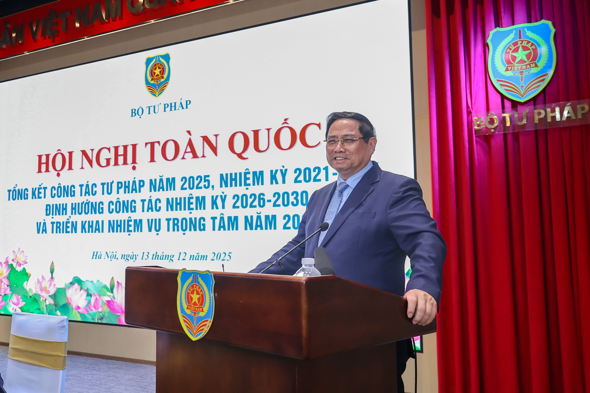 Thủ tướng Phạm Minh Chính dự Hội nghị toàn quốc tổng kết công tác tư pháp năm 2025 - Ảnh: VGP/Nhật Bắc