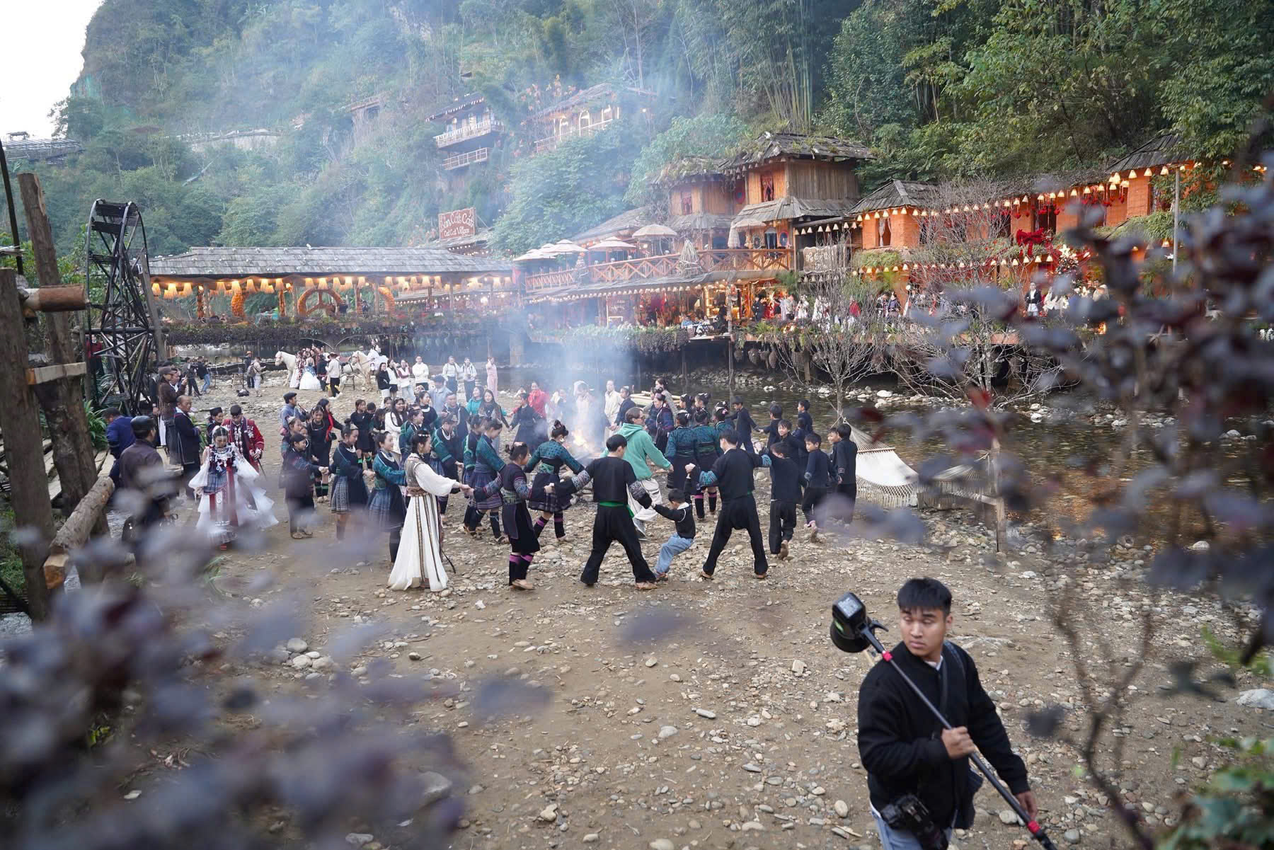 Tại đây, không chỉ các chàng trai, cô gái mà các già làng trưởng bản cũng được tham gia biểu diễn văn nghệ thực cảnh tái hiện sinh hoạt của người dân bản địa.