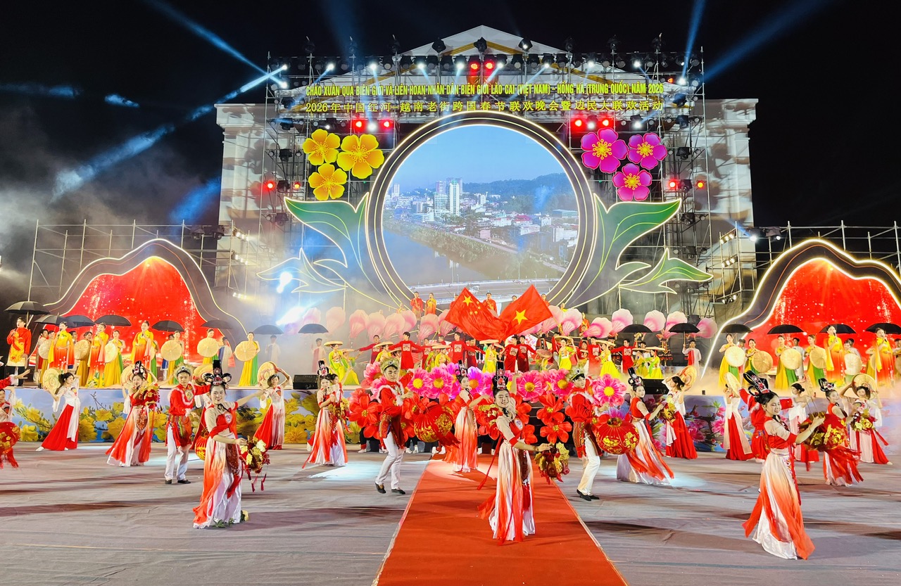 Trong không khí của những ngày đầu xuân mới, tối 2/2, tại Quảng trường Kim Tân, phường Lào Cai, Ủy ban nhân dân tỉnh Lào Cai (Việt Nam) và Chính quyền nhân dân Châu Hồng Hà (Trung Quốc) đã phối hợp tổ chức chương trình Giao lưu văn nghệ chào Xuân qua biên giới và Liên hoan Nhân dân biên giới Lào Cai (Việt Nam) – Hồng Hà (Trung Quốc) năm 2026.